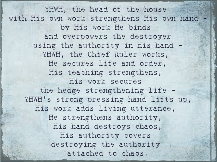YHVH, the Chief Ruler, He secures life and order, His teaching strengthens,